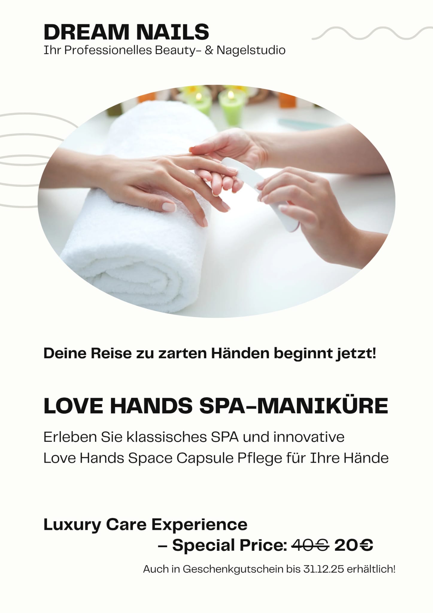 Entdecke die neuen LOVE HANDS SPA-Maniküre-Angebote bei Dream Nails!